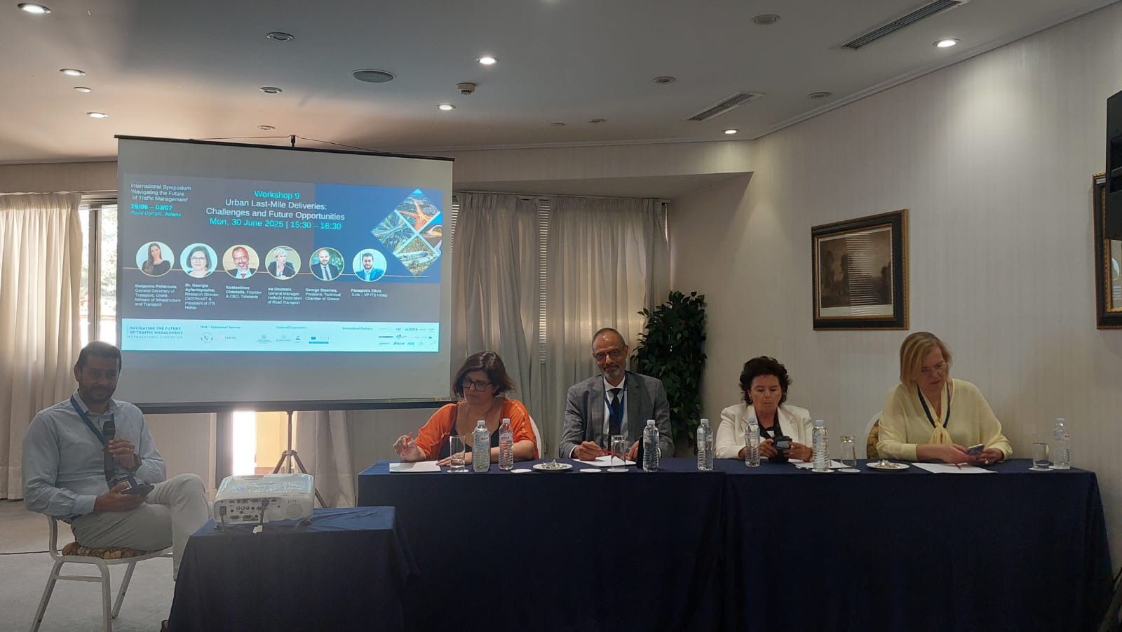 Στο πλαίσιο του Διεθνούς Συμποσίου «Navigating the Future of Traffic Management», το ITS Hellas έδωσε δυναμικά το παρόν σε ένα θεματικό workshop, εστιάζοντας στις κρίσιμες προκλήσεις και τις αναδυόμενες ευκαιρίες που σχετίζονται με τις αστικές παραδόσεις τελευταίου μιλίου (urban last-mile deliveries). Το workshop συγκέντρωσε βασικούς παράγοντες από τον χώρο της χάραξης πολιτικής, της έρευνας, των logistics και των οδικών μεταφορών, ρίχνοντας φως στις προκλήσεις και το μετασχηματιστικό δυναμικό των συστημάτων παράδοσης τελευταίου μιλίου στα αστικά περιβάλλοντα.